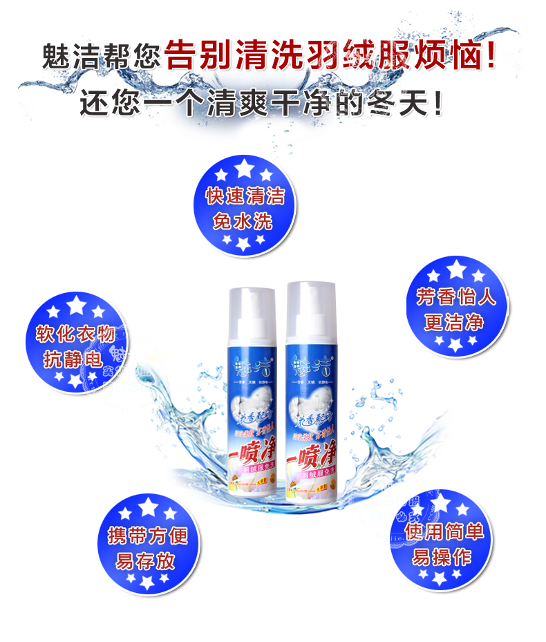 天天特价 魅洁干洗剂羽绒服清洗剂免水洗衣物去油渍衣服2瓶装
