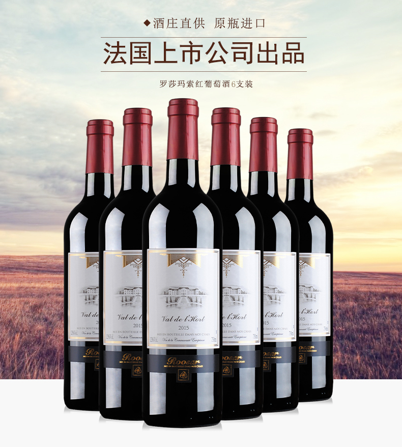 红酒整箱 法国葡萄酒 进口红酒 罗莎玛索红葡萄酒6支