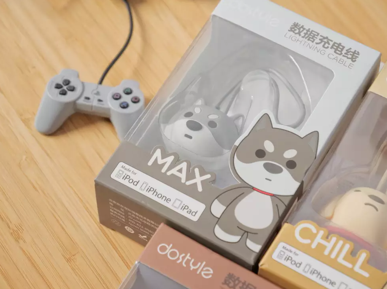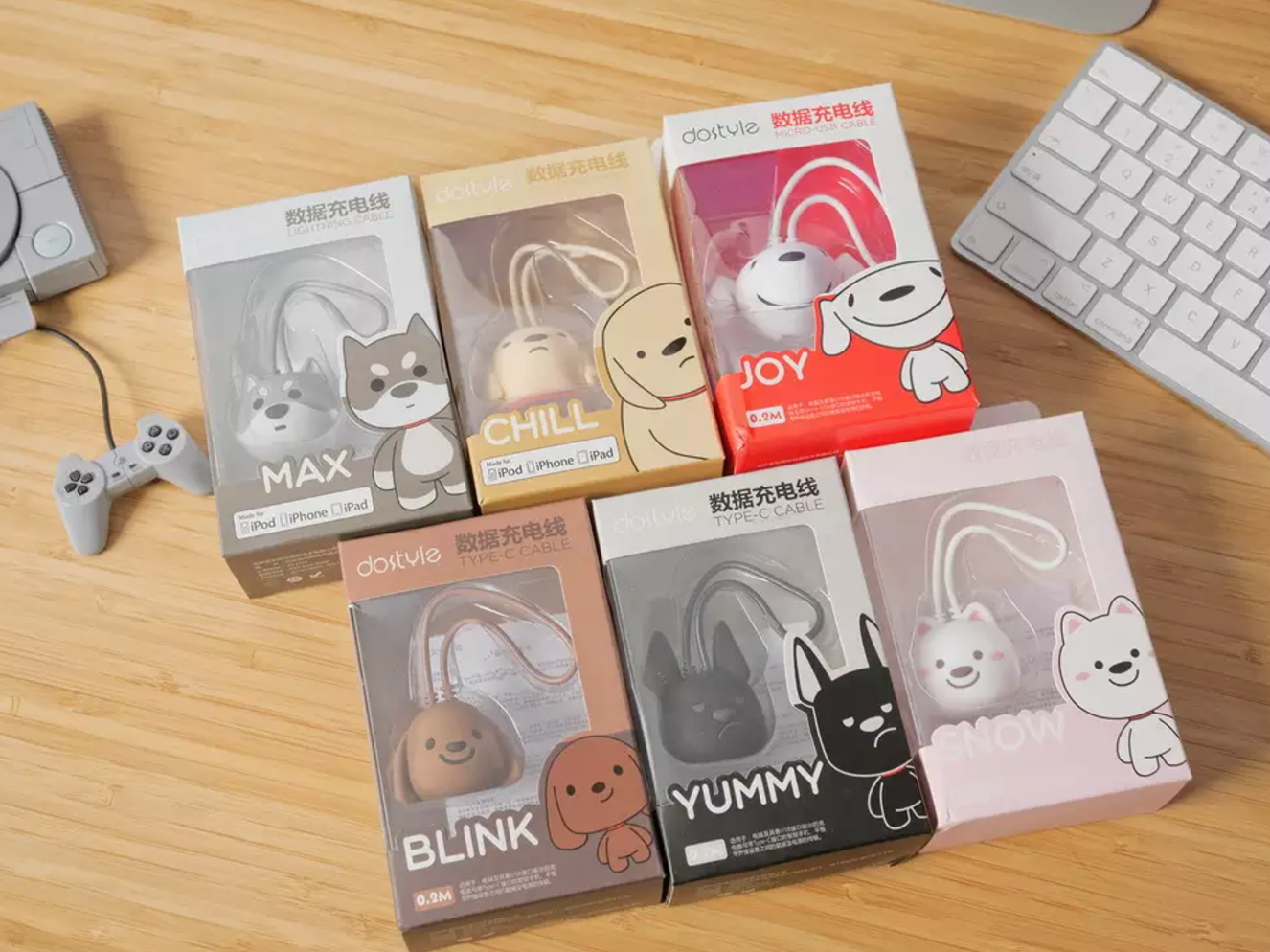 随着狗年将至,各种生肖定制产品也开始逐渐走俏。dostyle (京东自有品牌)也适时推出了定制的JOY&DOGA家族狗年限量款数据线。五种不同的宠物狗造型设计,萌蠢可爱,BLINK、YUMMY、MAX、CHILL、JOY还各有自己身世性格,颇为有趣。数据线线长为0.2mm,方便随身携带,有Lightning(MFI认证)、Type-C两种规格可供选择,其中JOY版本还有Micro USB接口可供选择。